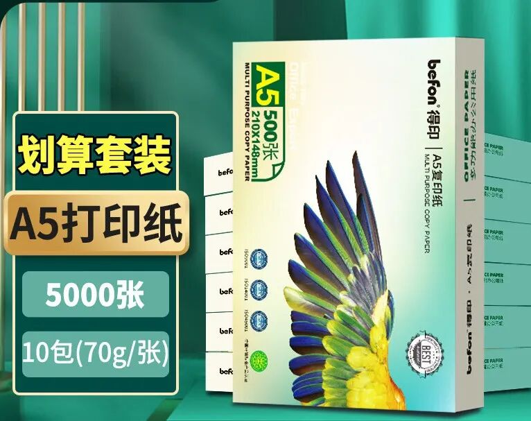 得印高品质A5打印纸,一套10包共5000张,每张70g。